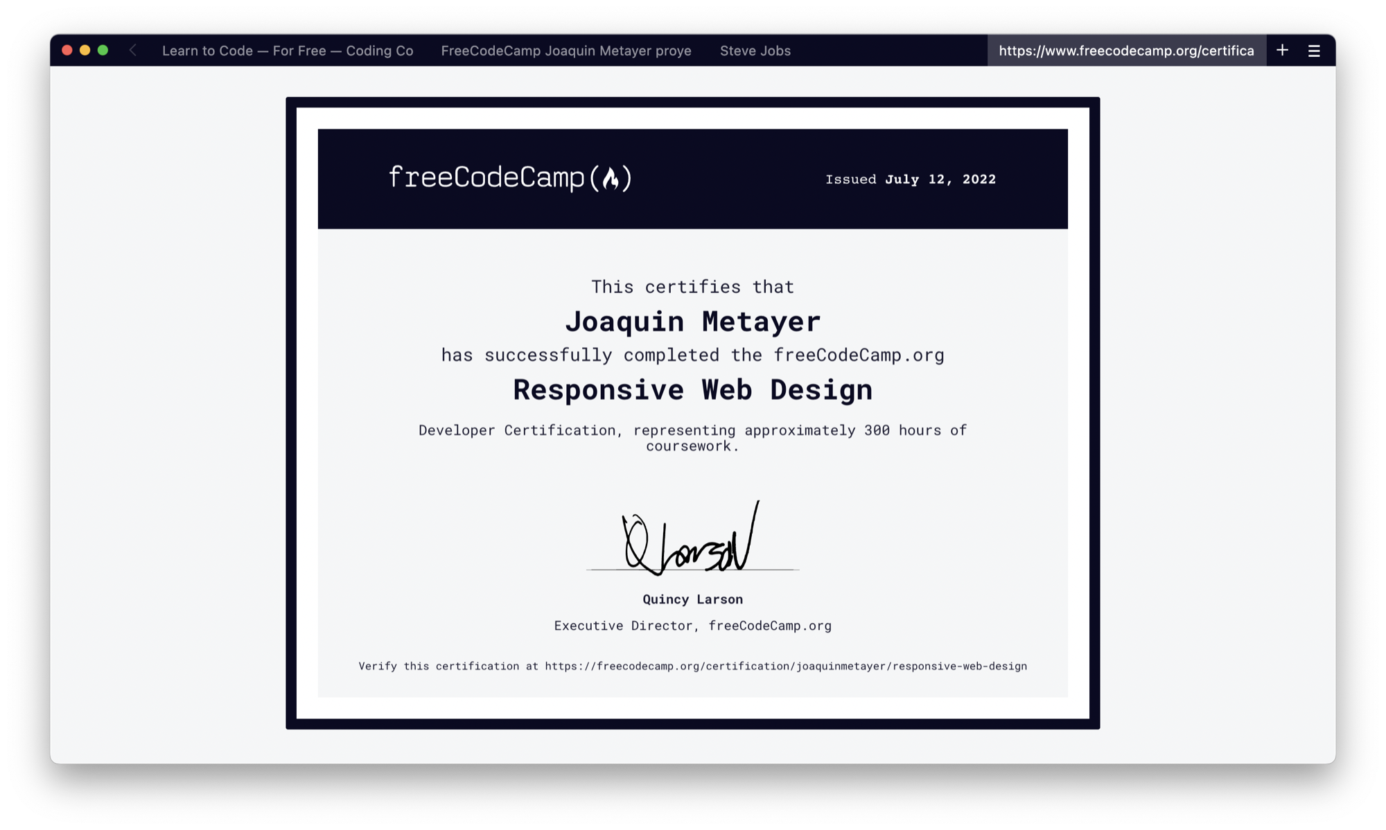 En los primeros pasos como desarrollador toca el desarrollo web con HTML y CSS, FreeCodeCamp Responsive Web Design es el curso que tiene eso que buscamos.